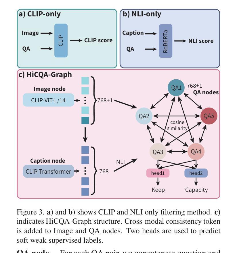 - 该技术结合了基于自然语言理解(NLI)的文本蕴含、基于CLIP的视觉语言对齐和代理信号,以识别和过滤不一致的样本。
