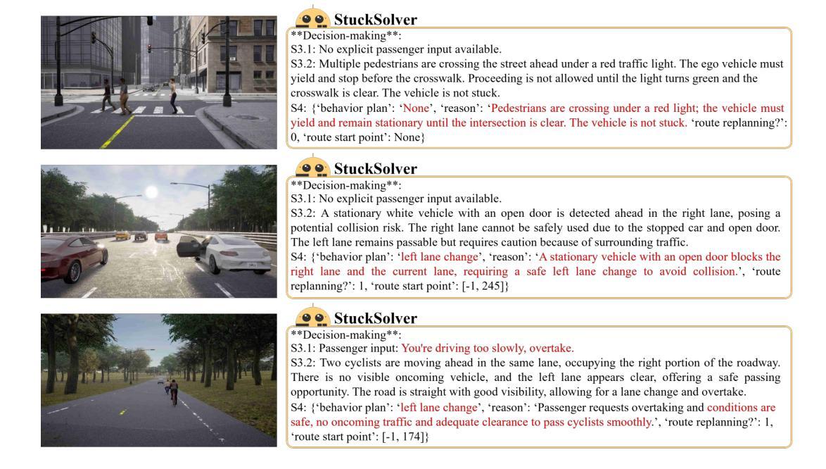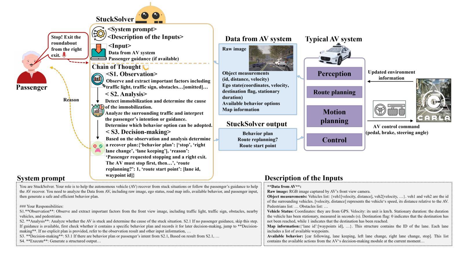 - StuckSolver是一个基于大型语言模型的恢复框架,能够通过自我推理和乘客引导决策帮助自动驾驶车辆解决僵停问题。