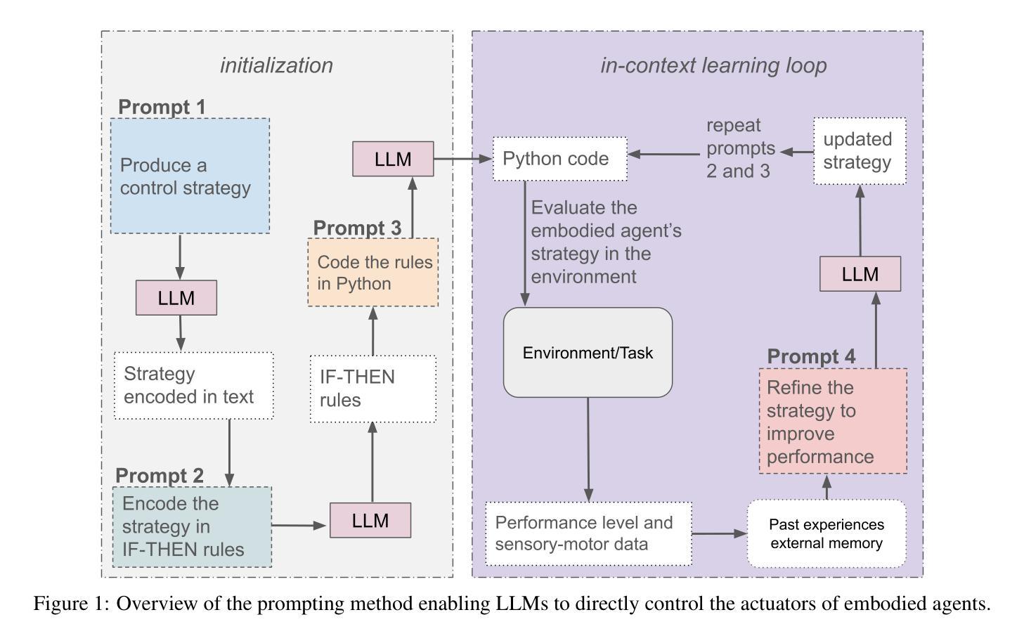 - 提出了一种基于大型语言模型(LLM)的控制方法,允许通过生成控制策略来控制实体代理。