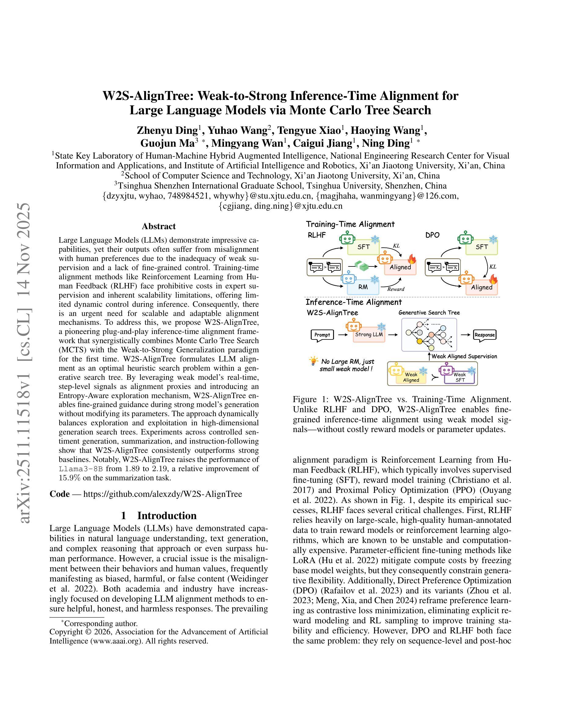 - W2S-AlignTree将LLM对齐表述为生成搜索树内的最优启发式搜索问题。