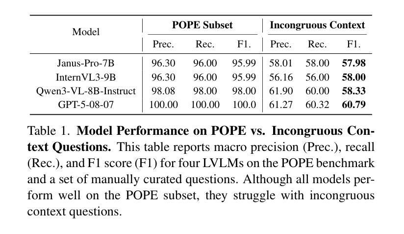 - 对多个LVLM和开放词汇检测器的评估显示,在不一致的语境下性能下降,并存在偏见模式。