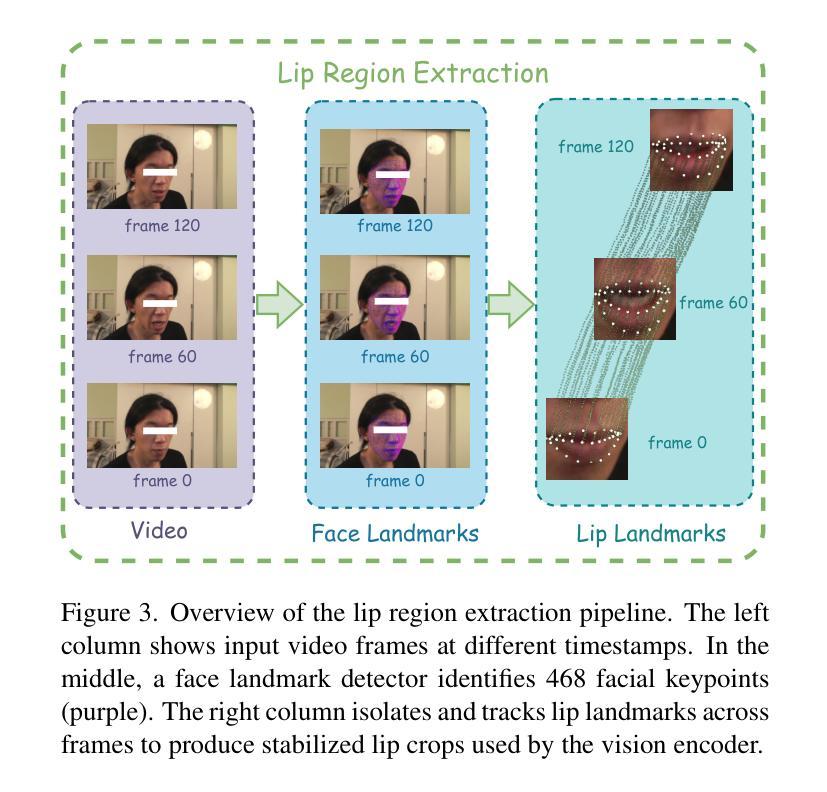 - 针对听力受损者的独特发音模式,开发了一个多模式预处理和筛选管道,包括检测面部地标、稳定唇部区域和评估样本质量。