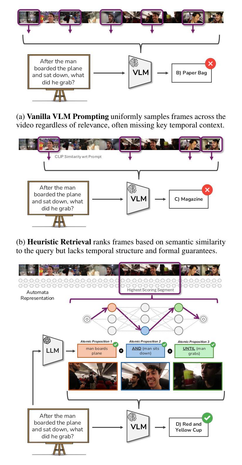 - 仅将满足逻辑要求的视频段提交给VLM,提高了可解释性,减少了幻觉,并实现了组合推理而无需修改或微调模型。