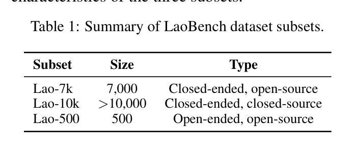 - LaoBench是首个针对老挝语的大型、高质量、多维基准测试数据集。