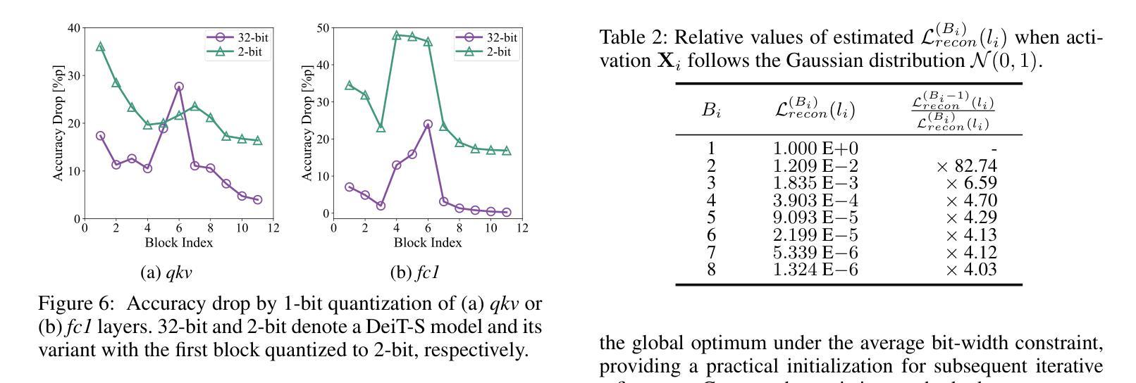 - 现有方法主要依赖统一精度进行量化,忽略了ViT组件的不同敏感度。
