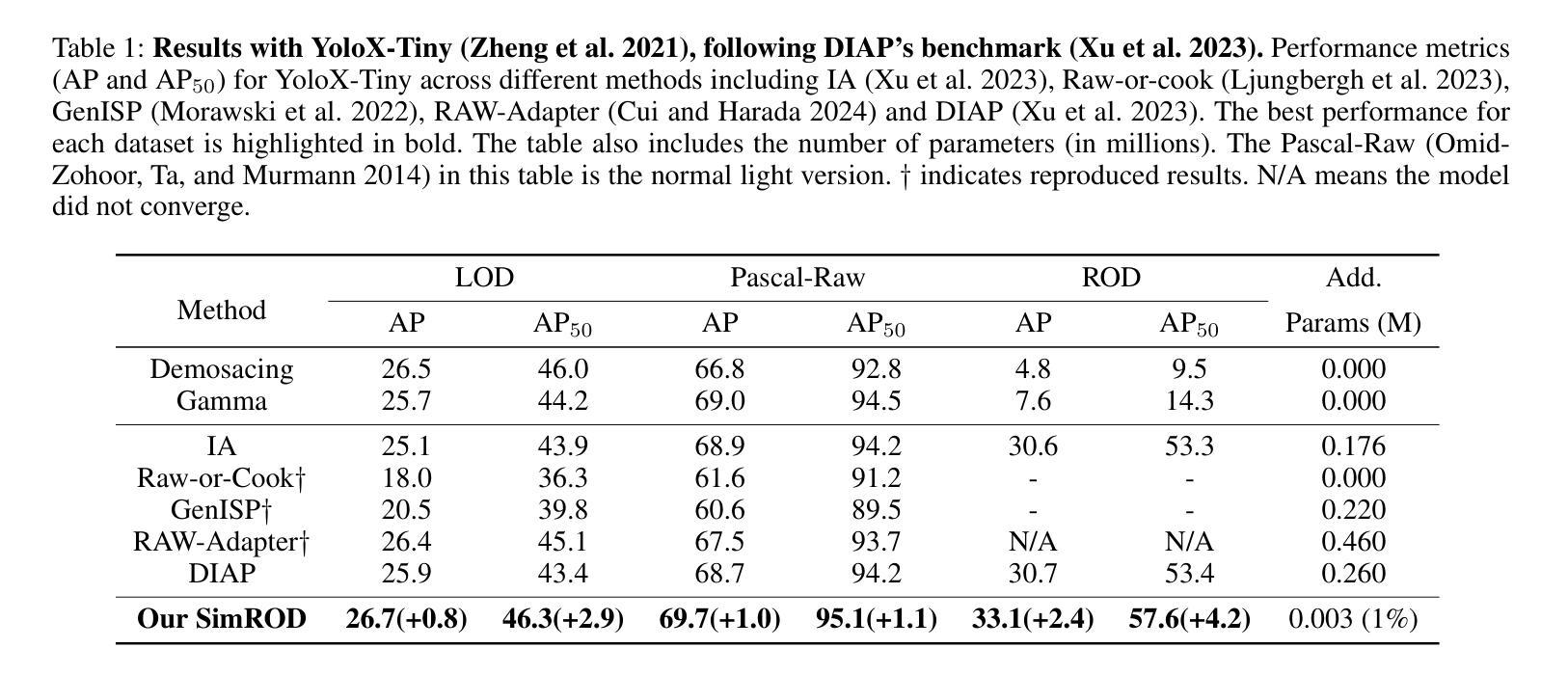 - SimROD方法通过全局伽马增强模块和绿色通道信号的利用,解决了RAW数据对象检测的挑战。