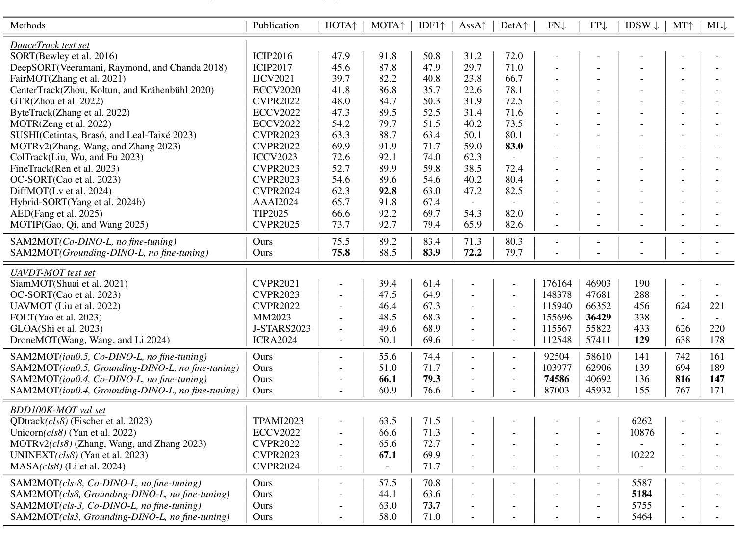 - SAM2MOT有效应对误报和遮挡等跟踪过程中的常见挑战。