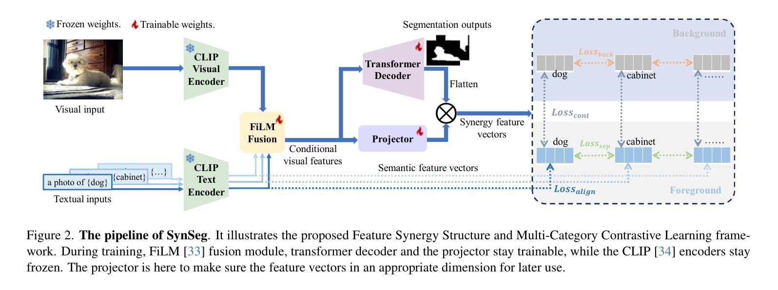 - 本研究提出了SynSeg方法,包括多类别对比学习(MCCL)和特征协同结构(FSS)来解决挑战。