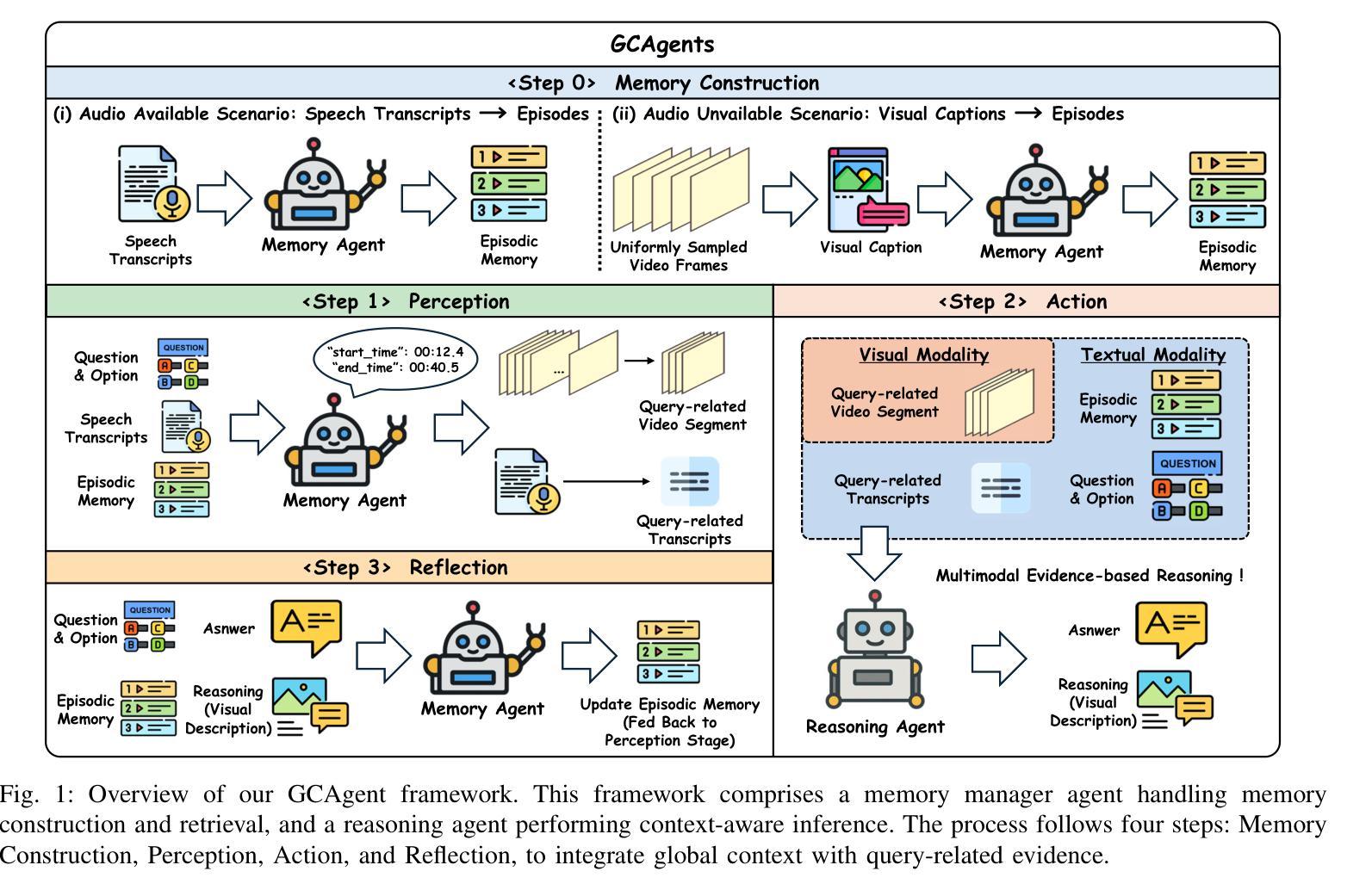 - GCAgent运行在多阶段感知-行动-反思循环中,并通过内存管理器检索相关情景上下文进行稳健的上下文感知推理。