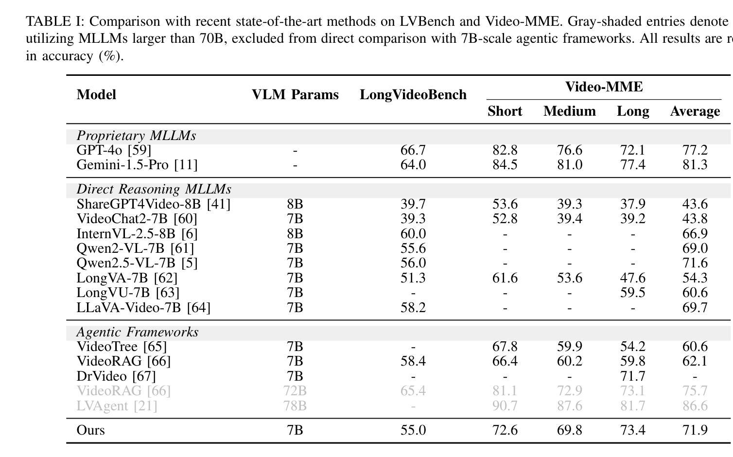- 实验结果显示,GCAgent在Video-MME长分割上的准确率提高了高达23.5%,并在类似规模的MLLMs上达到了最先进的性能。