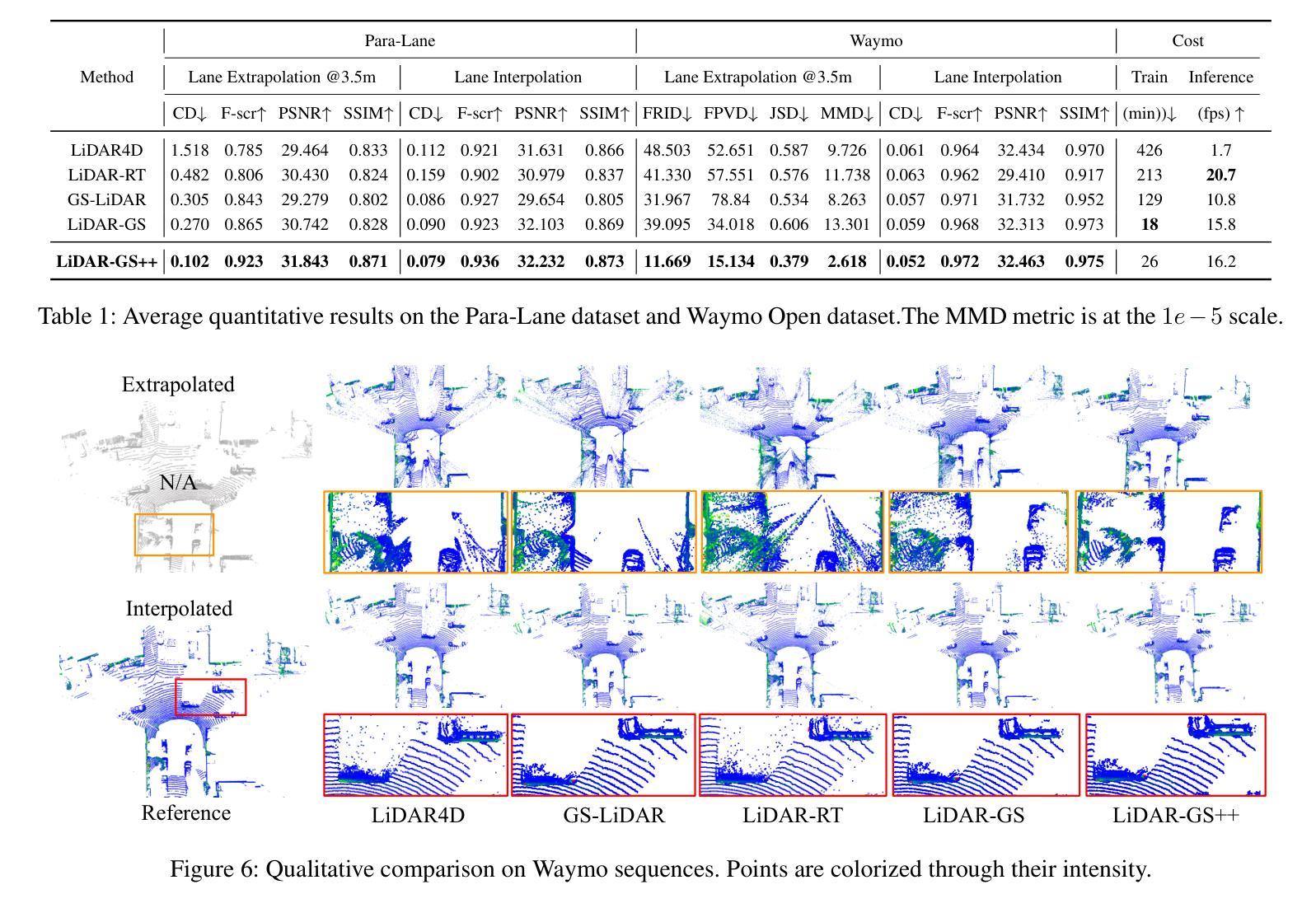 - 在多个公共数据集上的实验表明,LiDAR-GS++在插值和推断观点上达到了最先进的性能。