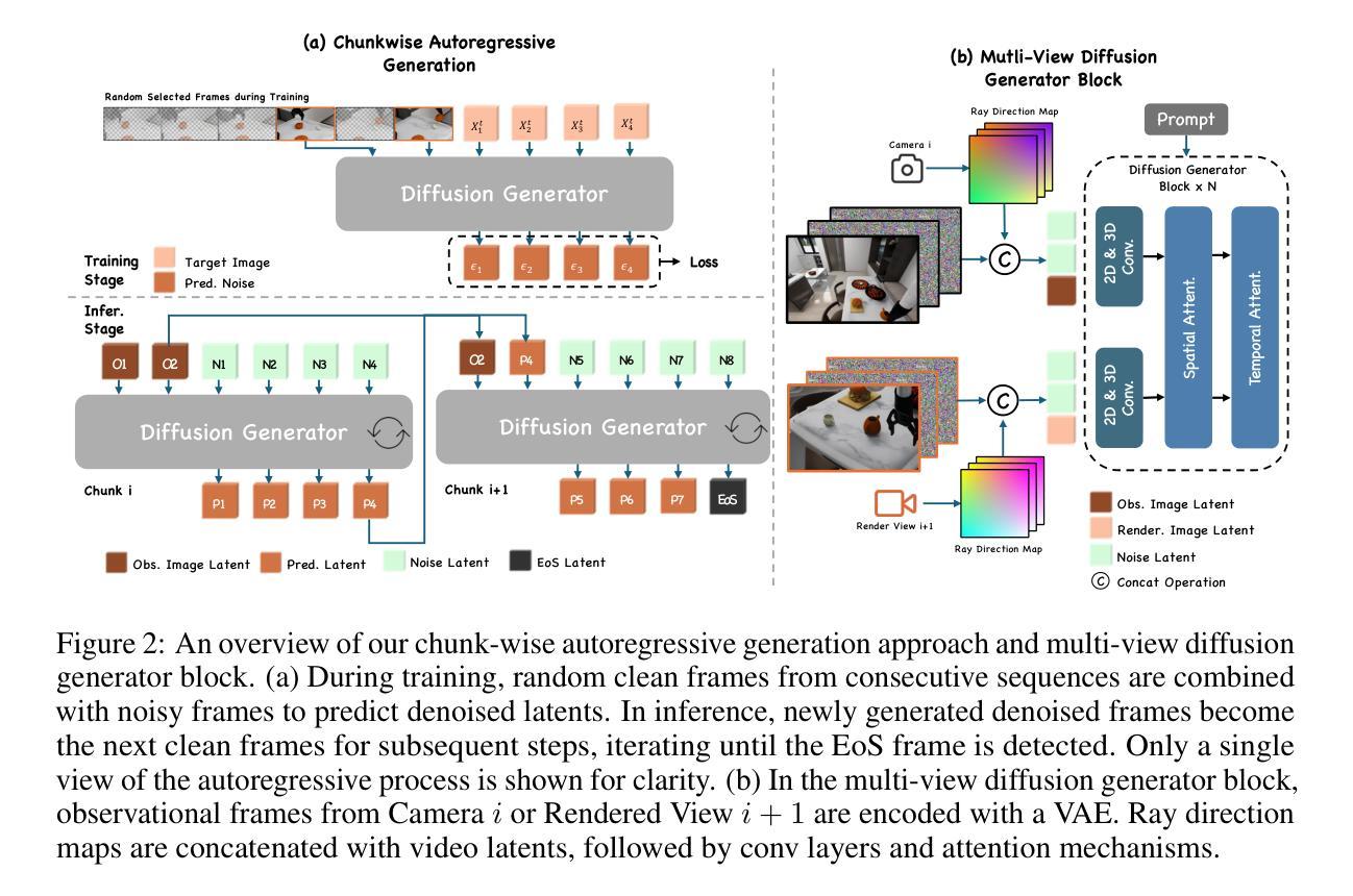 - 采用分块自回归视频扩散框架进行预测。