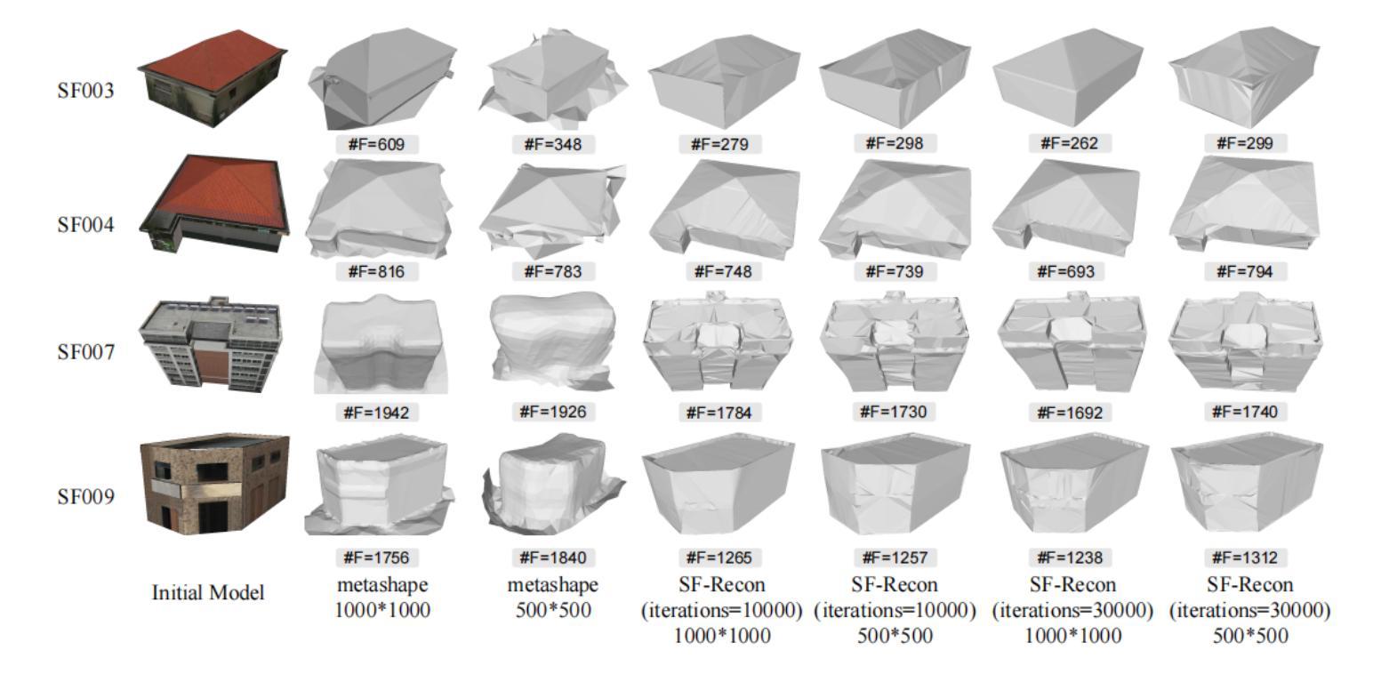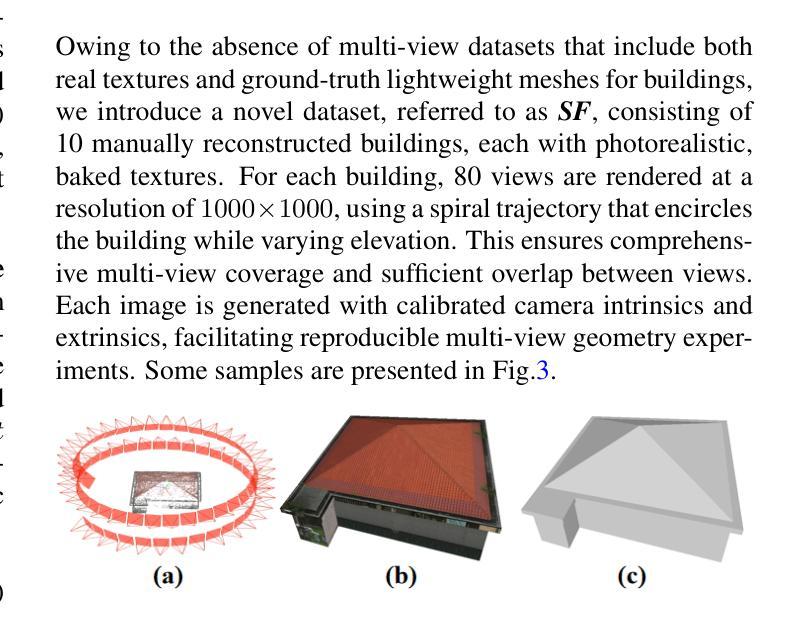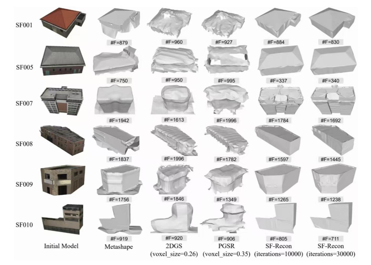- SF-Recon方法可直接从多视角图像重建轻量级建筑表面模型,无需后续网格简化。