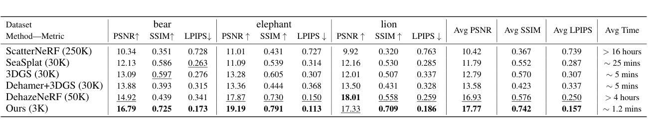 - 训练过程中联合学习大气光和散射系数,优化Gaussian表达。