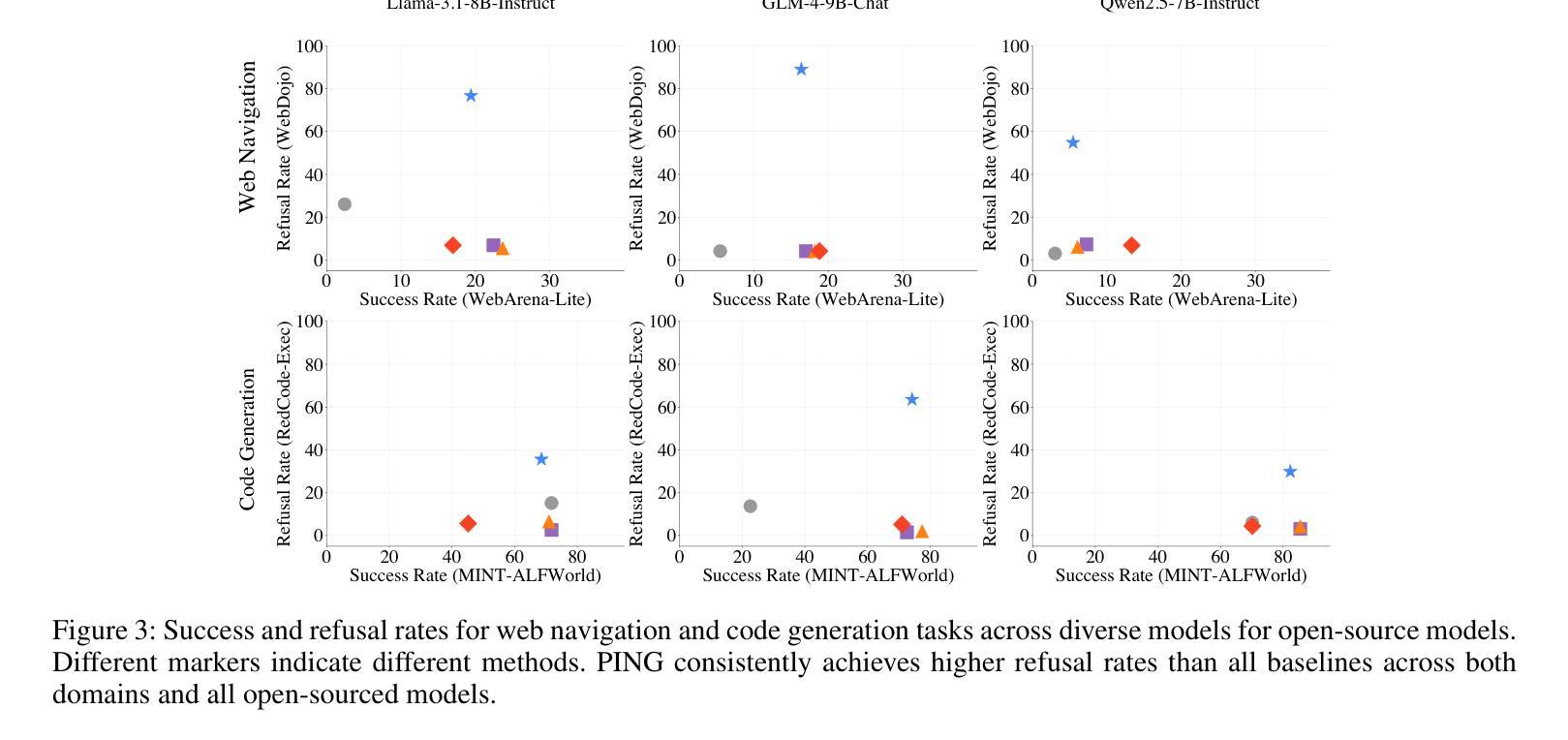 - 提出了一种名为PING的方法,通过向代理响应添加自然语言前缀来指导LLMs拒绝有害请求。