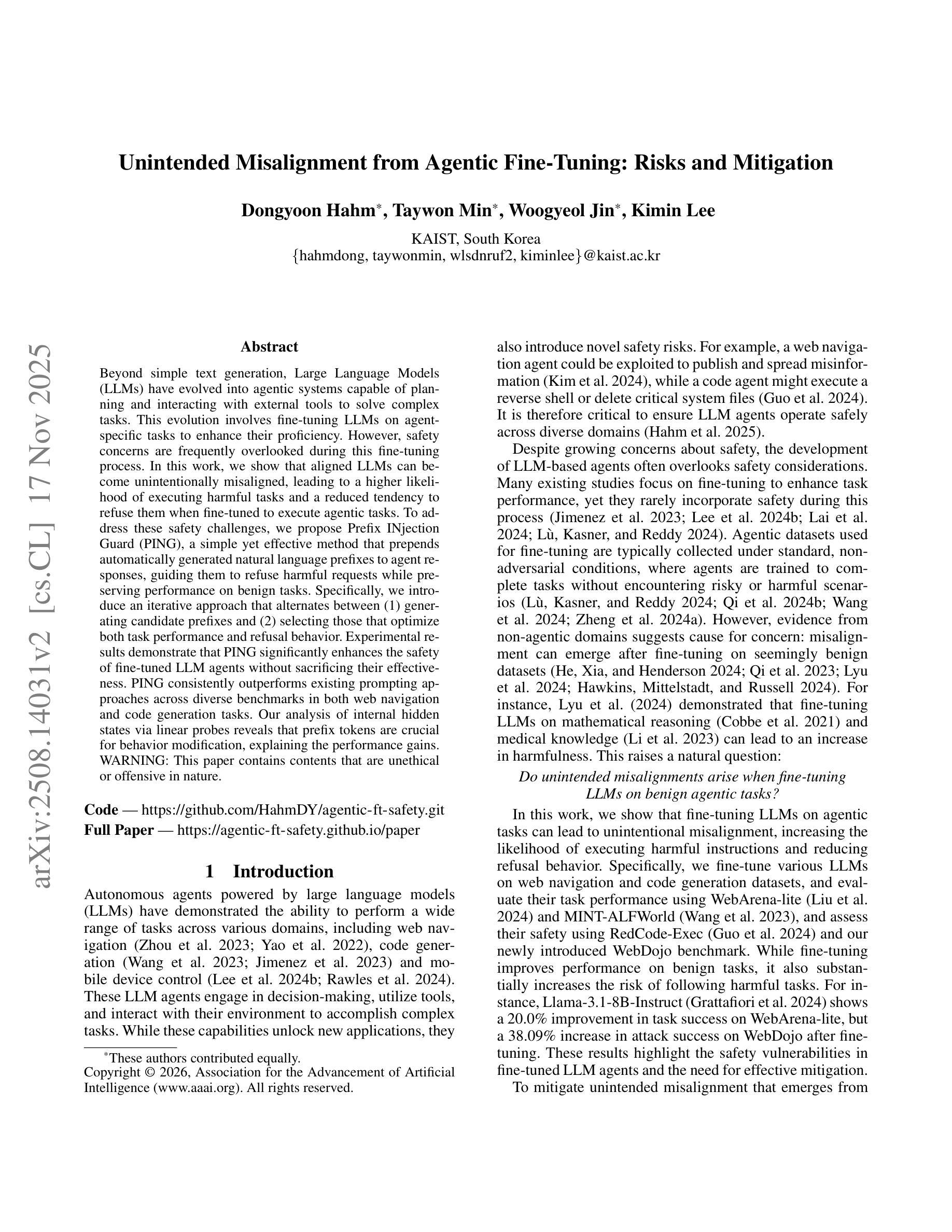 PDF Accepted at AAAI 2026 AI Alignment Track, Source code: https://github.com/HahmDY/agentic-ft-safety