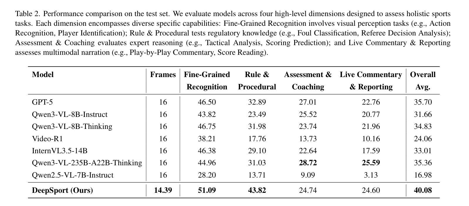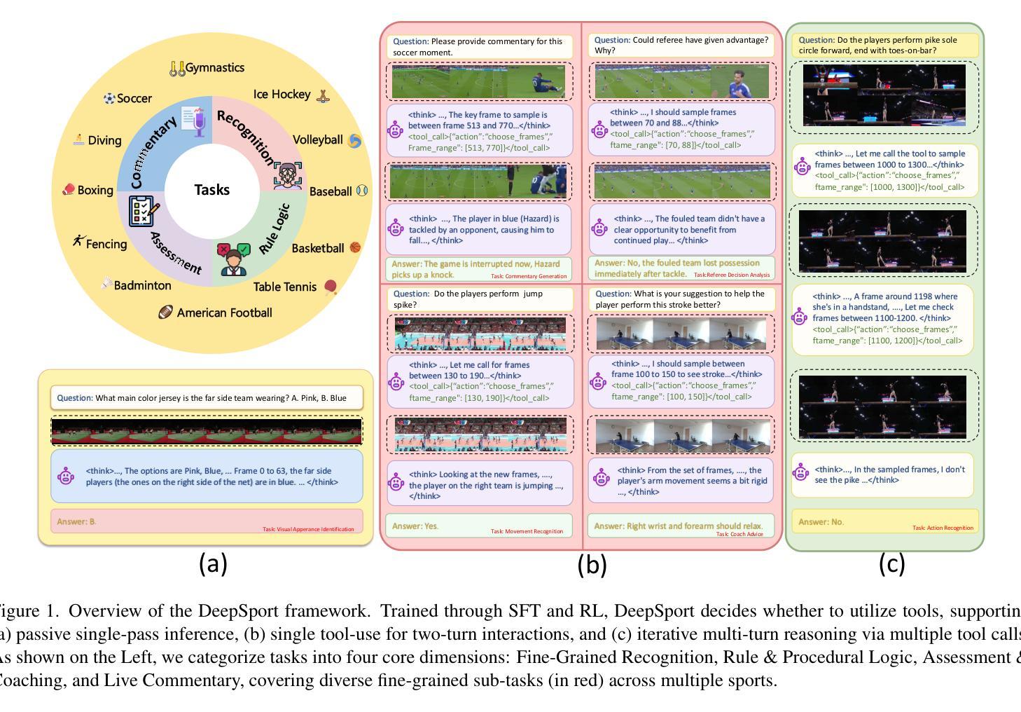 - DeepSport采用主动迭代推理的方法,通过专用帧提取工具对视频内容进行动态询问,实现了从被动帧处理到主动思考的转变。