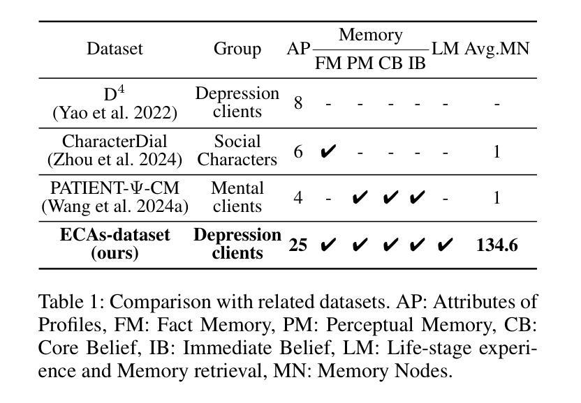 - 开放对话数据集在心理健康领域主要依赖人工或AI合成方法生成,因心理过程的隐性特质,数据真实性和多样性面临挑战。