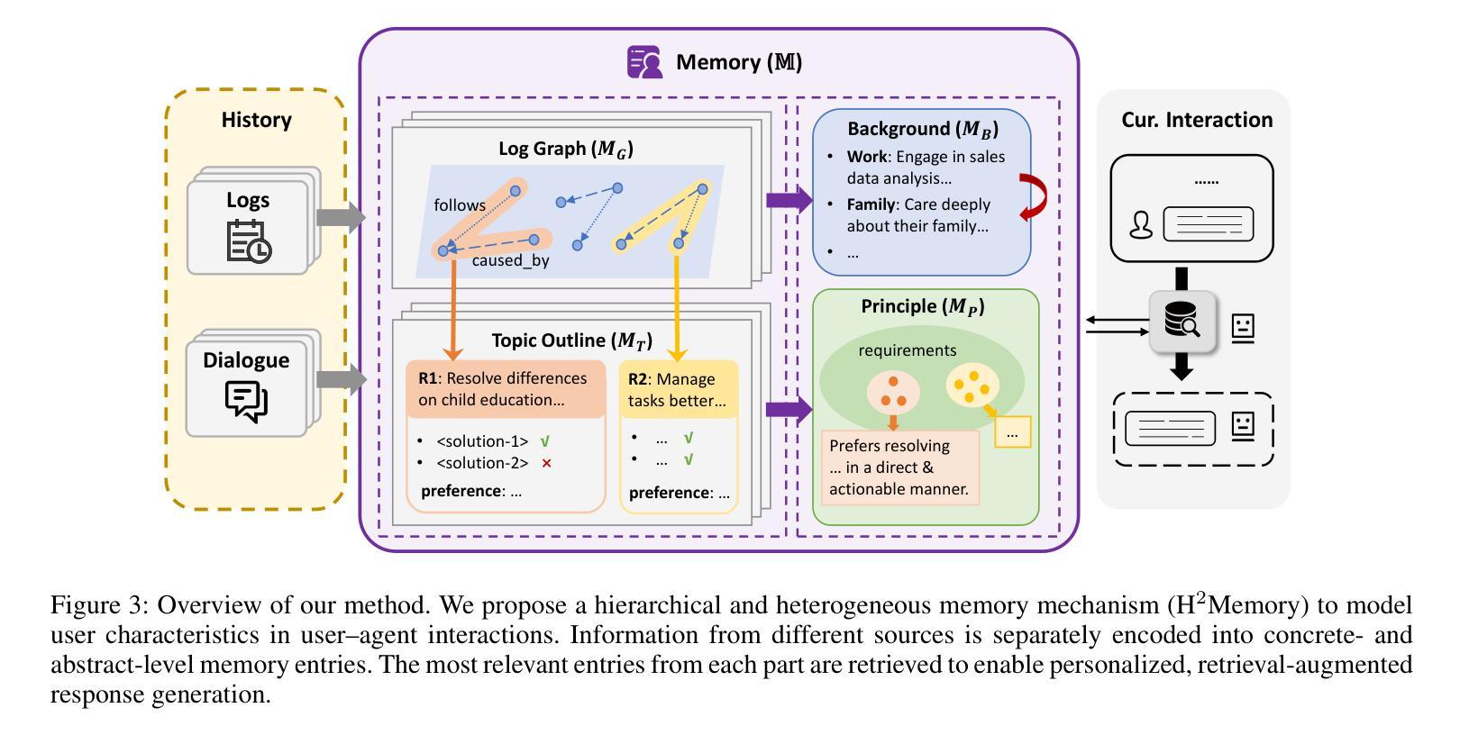 - 提出了H^2Memory框架,结合检索增强生成技术,提高了个性化响应生成的效果。
