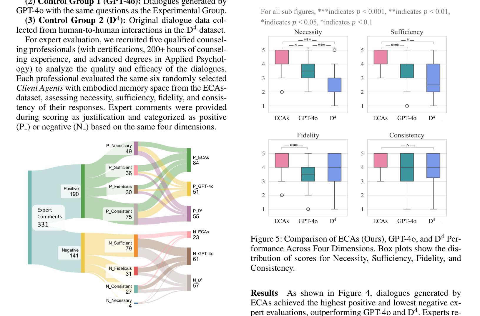 - 公开ECAs数据集通过批量模拟创建,经许可咨询师评估,在模拟真实性和必要性方面显著优于基线方法。
