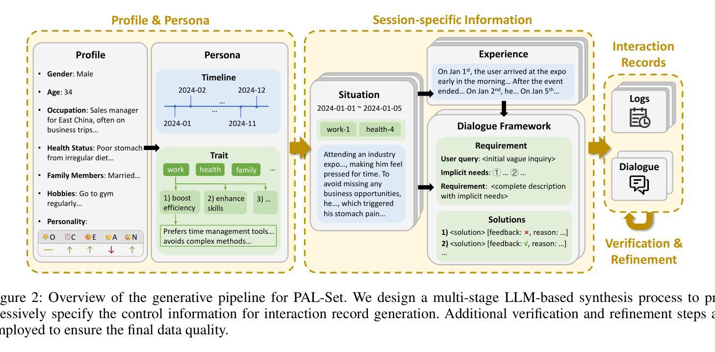 - 为了支持PAL-Bench,开发了一个多步骤的LLM合成管道,产生了首个包含多会话用户日志和对话历史的中文数据集——PAL-Set。