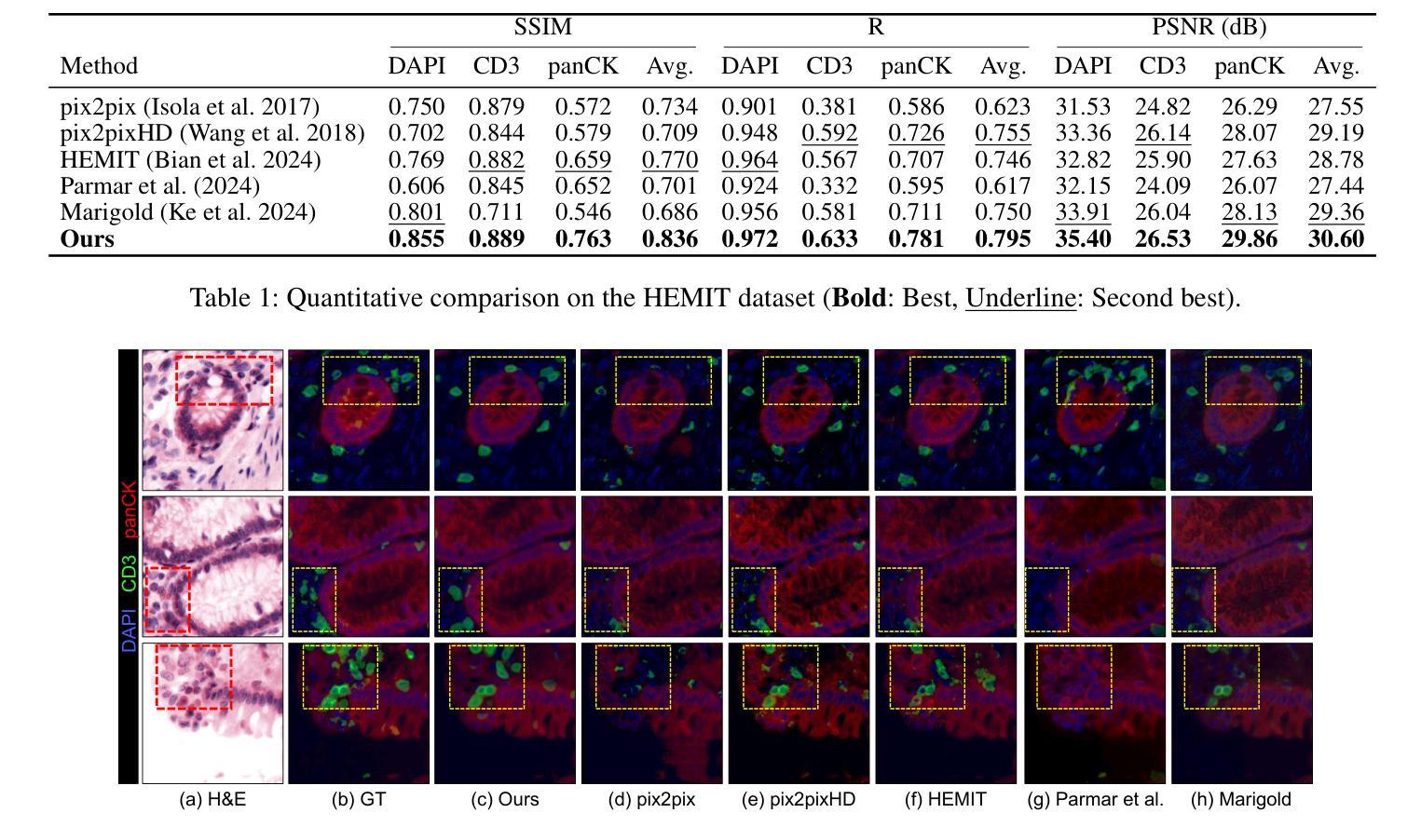 - 研究解决了不同标记物染色像素值分布不均的问题,提高了推理速度和颜色对比度的保真度。
