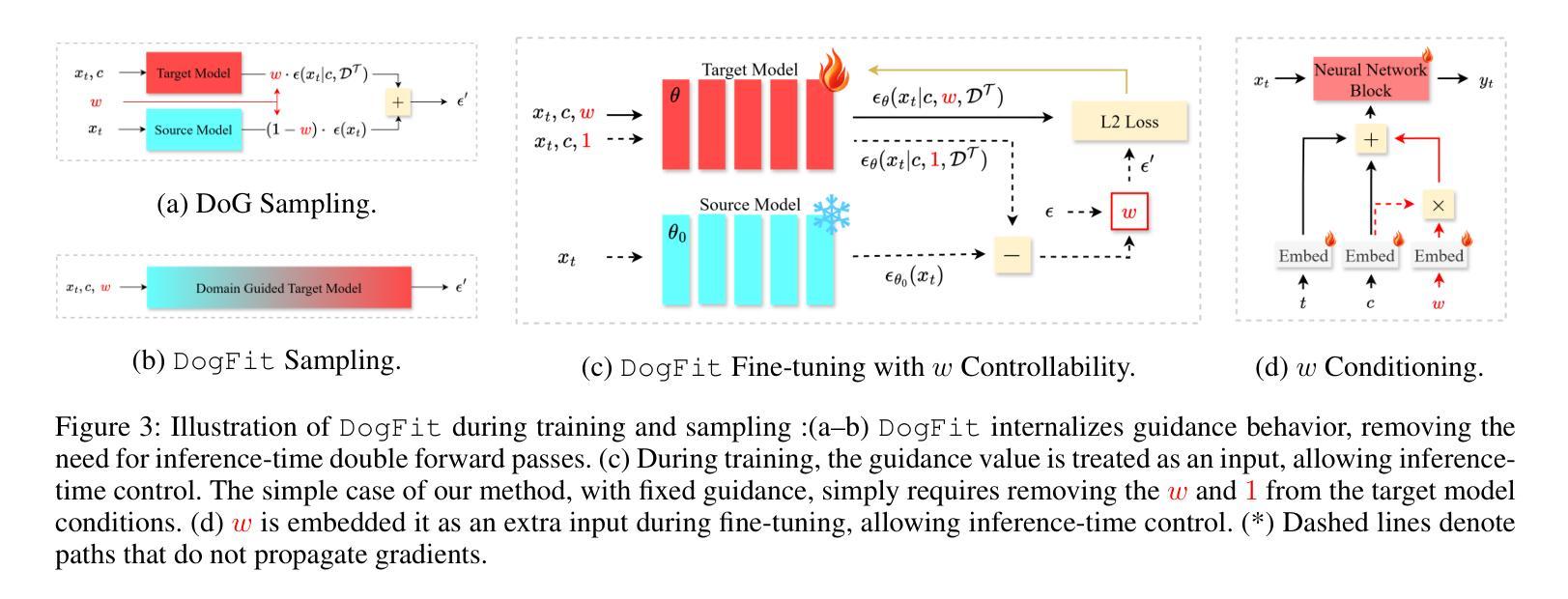 - DogFit采用轻量级条件机制,将指导强度值作为附加模型输入,以实现可控的保真度与多样性的权衡。