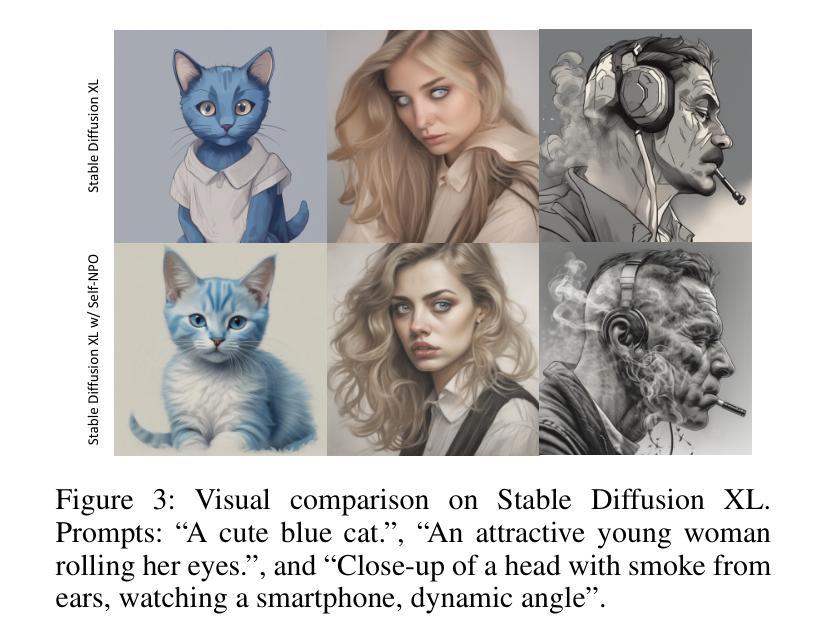 - Diffusion-NPO引入负偏好优化(NPO),通过训练模型生成与人类偏好相反的输出,使用分类器免费的指导(CFG)避免不良结果。