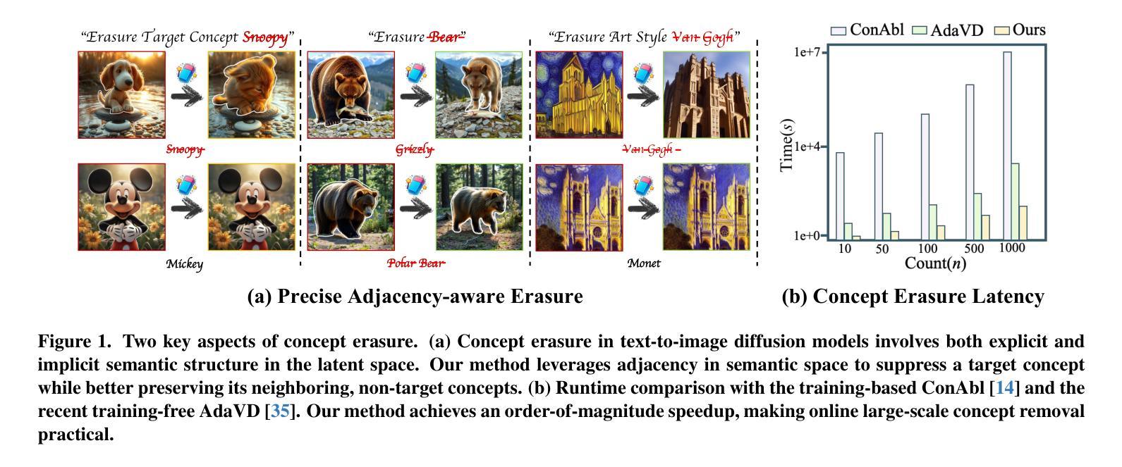 - 概念擦除的目标是从文本到图像的扩散模型中移除有害、不合适或版权内容,同时保留非目标语义。