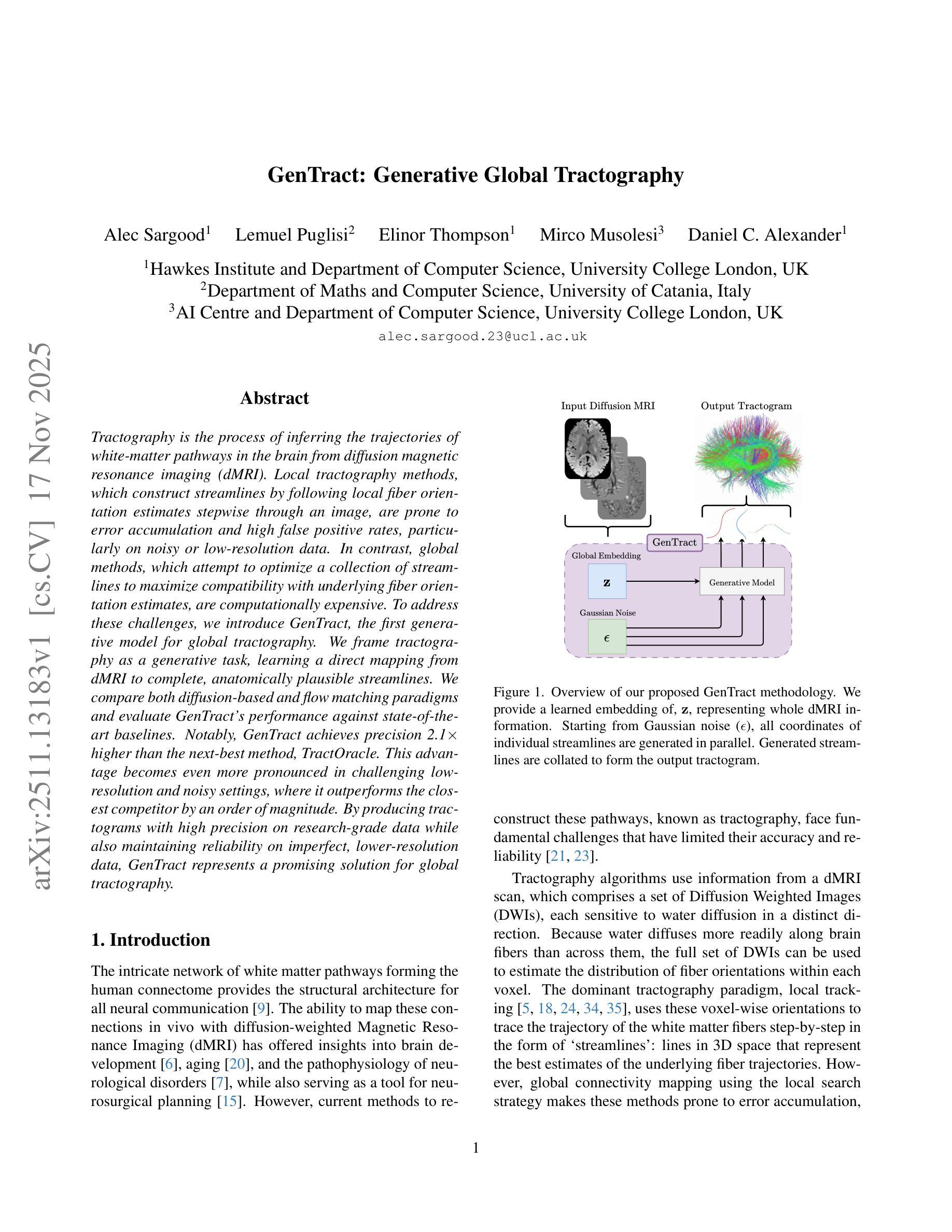 - GenTract 是首个用于全局追踪的生成模型,能从 dMRI 直接生成完整、解剖上合理的流线。