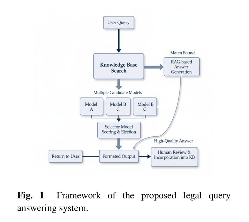 - 系统优先从可靠的法务库中检索答案,否则通过多模型生成候选答案并选择最佳答案。