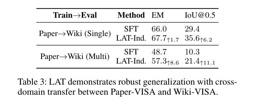 - LAT在训练过程中鼓励流程级别的自我验证,提升了模型的精确匹配和区域重叠评价指标。