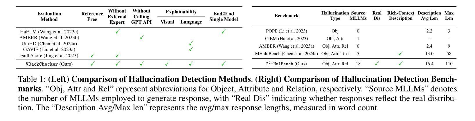 - 建立了新的MLLM幻觉基准测试R² -HalBench,包含真实世界丰富语境描述和高质量注释。
