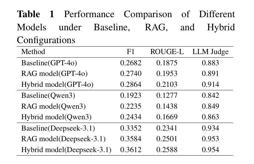 - 实验表明混合方法优于单模型基准和基本的RAG管道。