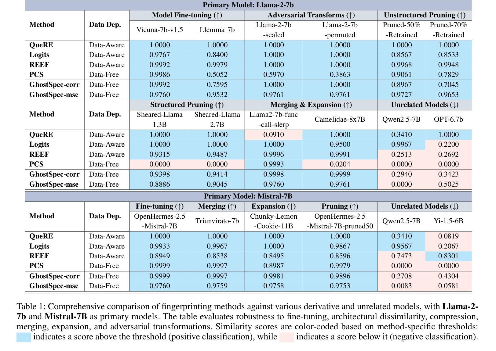- GhostSpec方法对于模型的连续微调、修剪、块扩展等操作以及对对抗性转换具有稳健性。