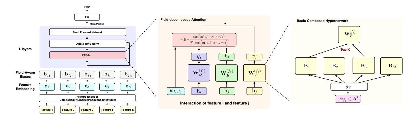- Field-Aware Transformer(FAT)通过嵌入字段交互先验信息解决这一问题。