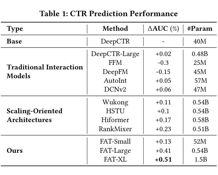 - FAT提高了CTR预测准确率,并在大型基准测试中表现出优越性能。