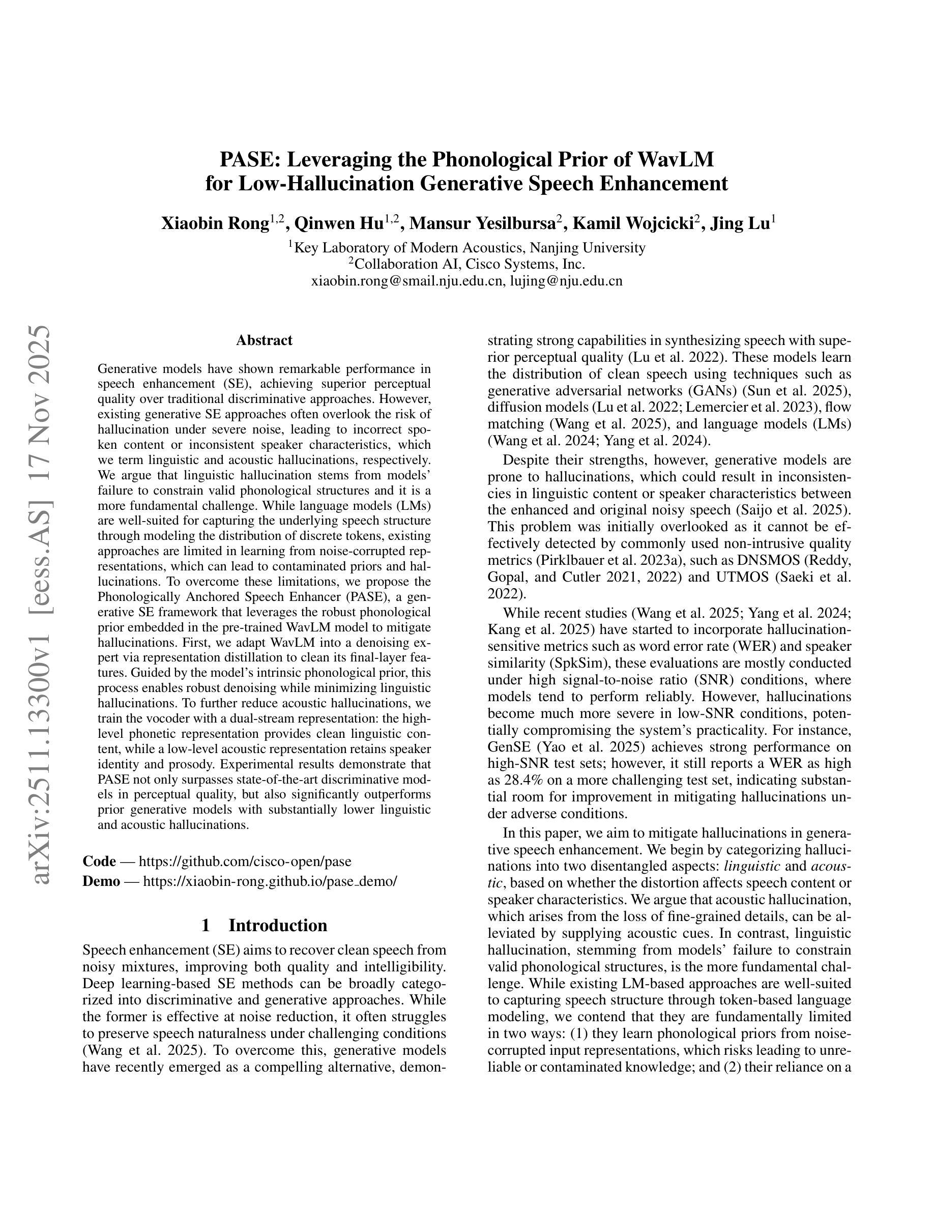 - 提出PASE框架利用WavLM模型的稳健语音结构先验来减轻幻听现象。