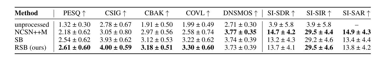 - 在语音增强领域的实验表明,RSB在失真指标上表现优异。
