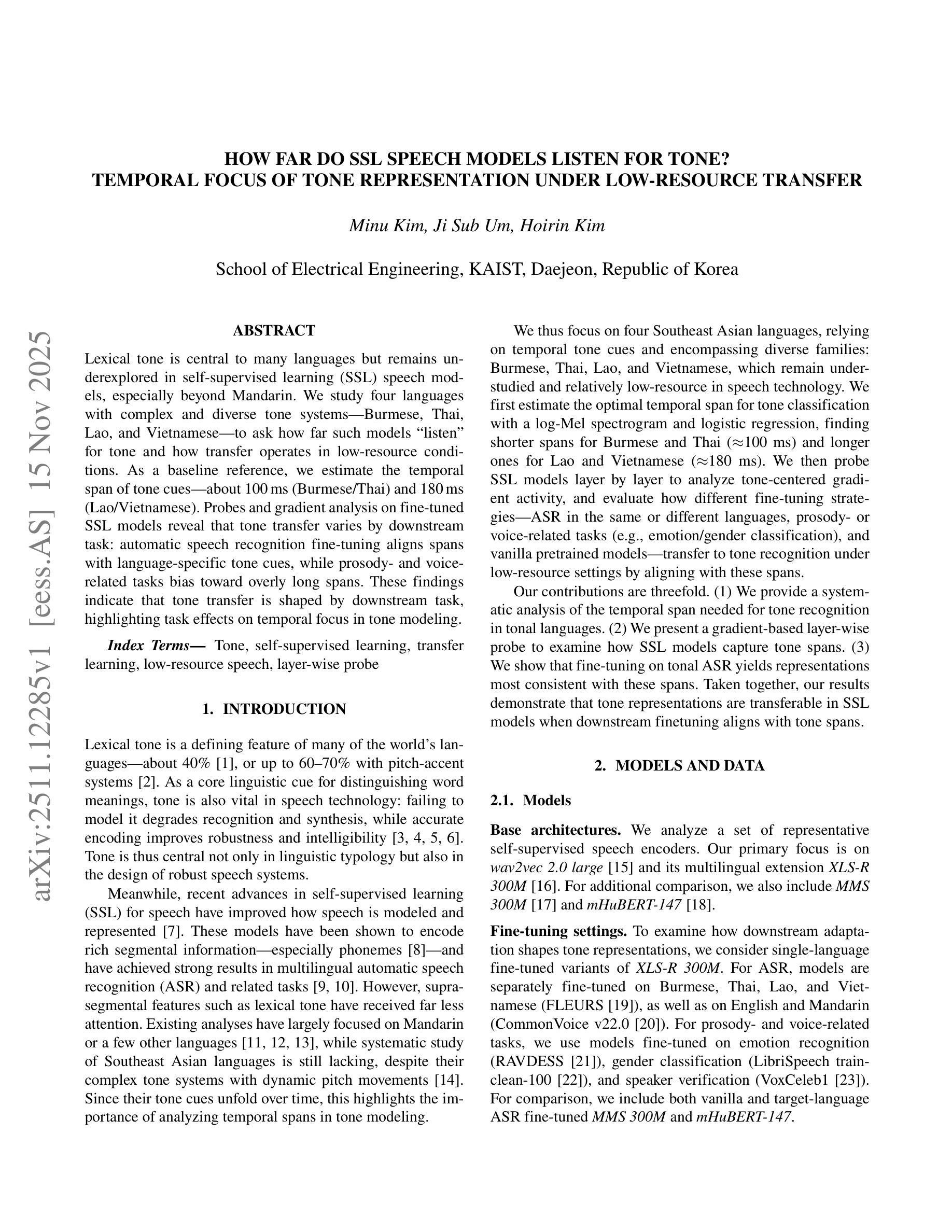 - 自监督学习(SSL)在语音模型中对音调的探索尚显不足,特别是在处理复杂多样语言体系方面,例如缅甸语、泰语、老挝语和越南语等。