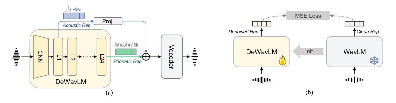 - 通过表示蒸馏使WavLM适应去噪专家角色,以净化特征并减少语言幻听。