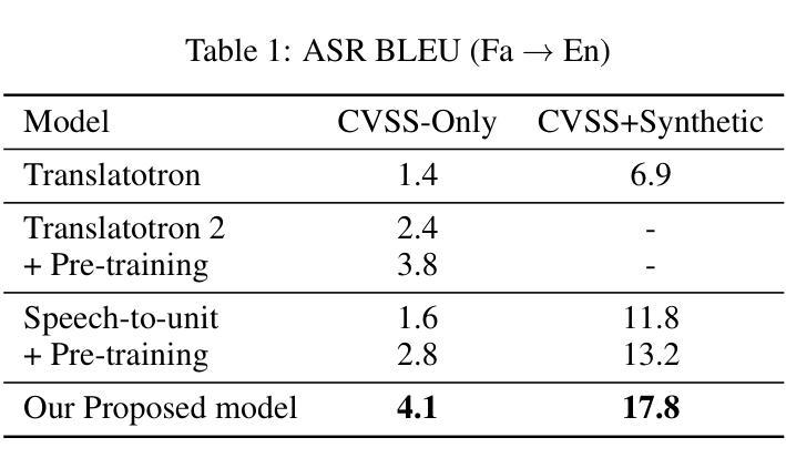 - 在CVSS语料库的波斯语-英语部分进行的实验中,新模型在ASR BLEU得分上较直接基线提高了4.6。