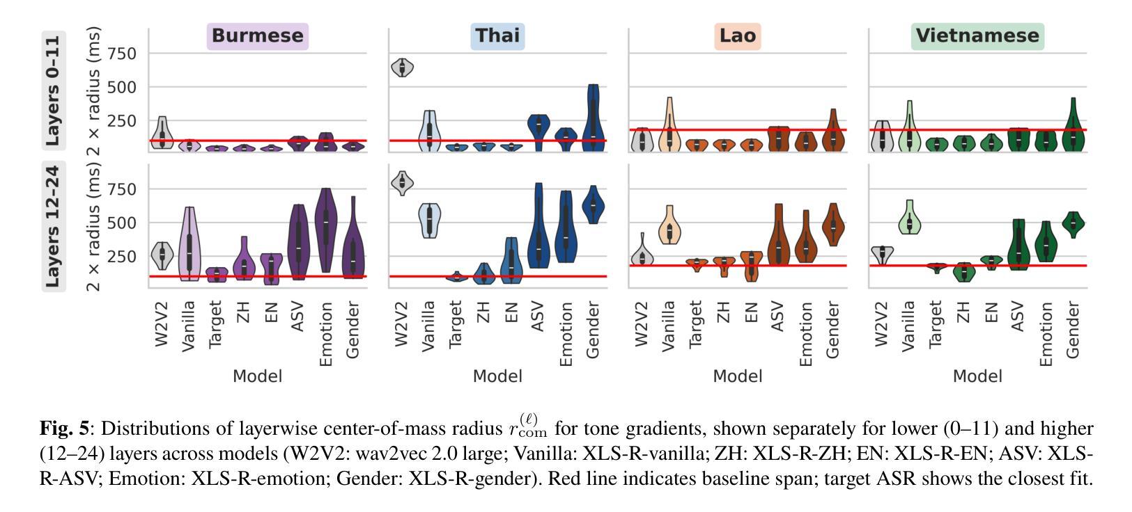 - 音调信息的捕捉时长因语言而异,通常在缅甸语和泰语中约为100毫秒左右,而在老挝语和越南语中则大约为180毫秒。这表明不同语言的音调系统有其独特的声学特征。