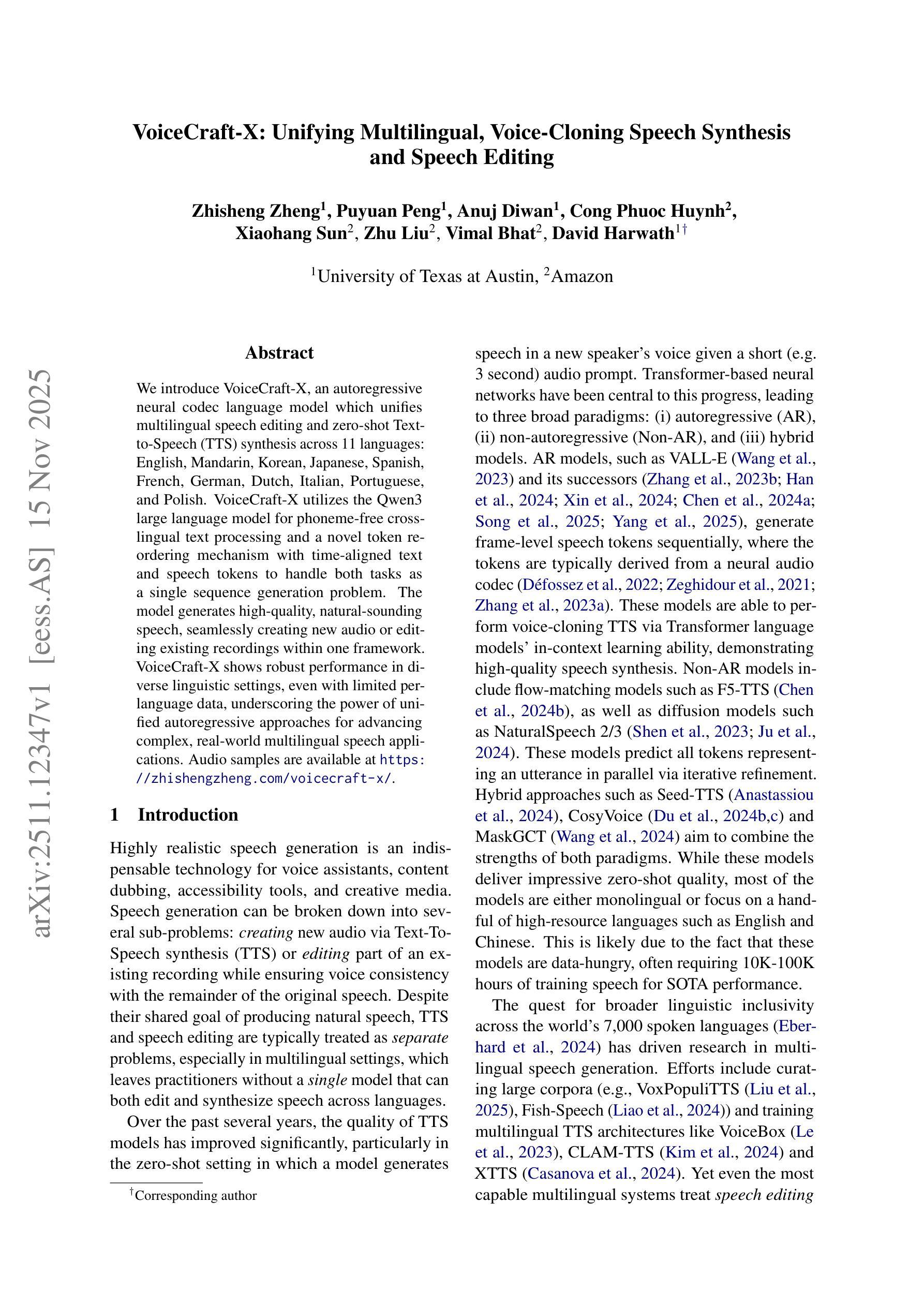 PDF EMNLP 2025. Demo and code are available at https://zhishengzheng.com/voicecraft-x/