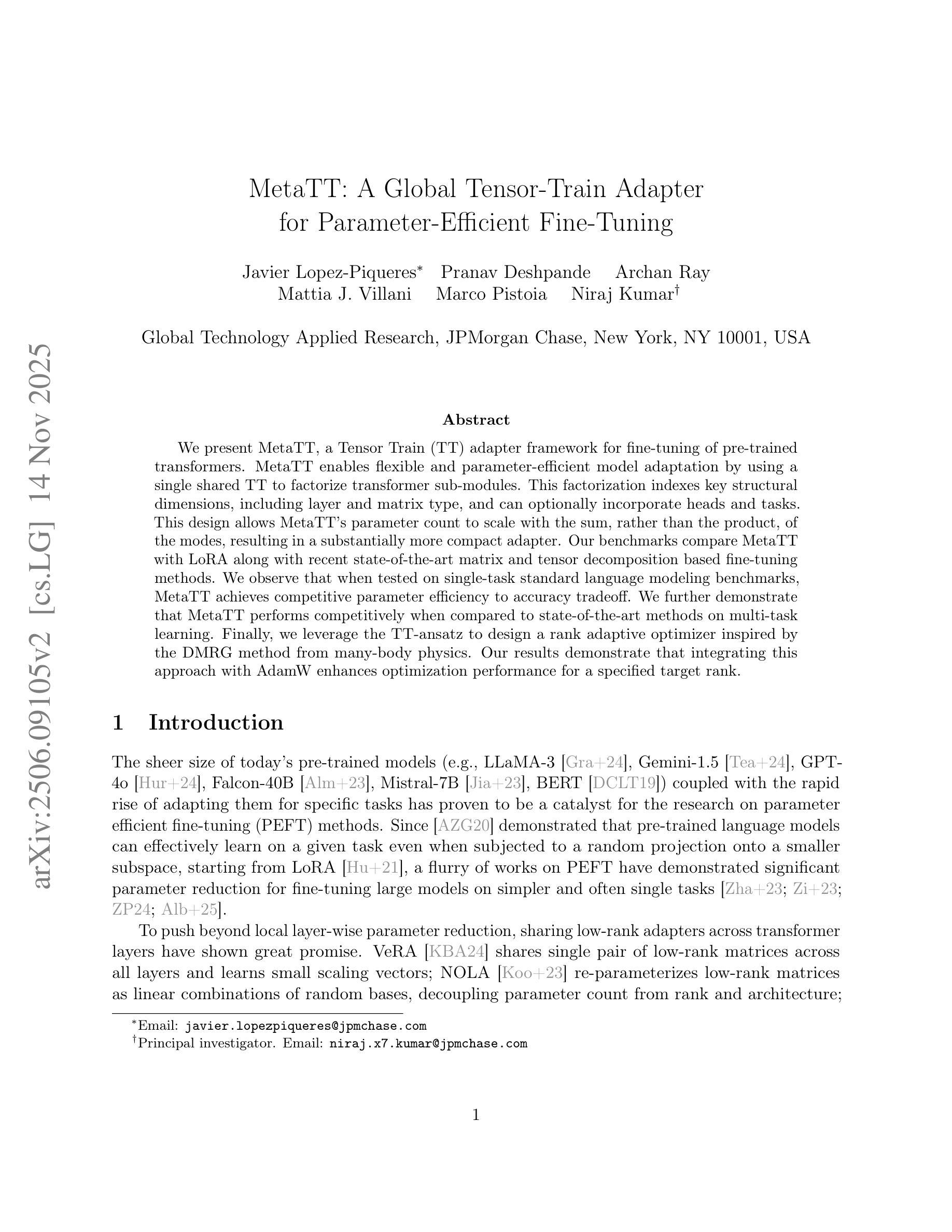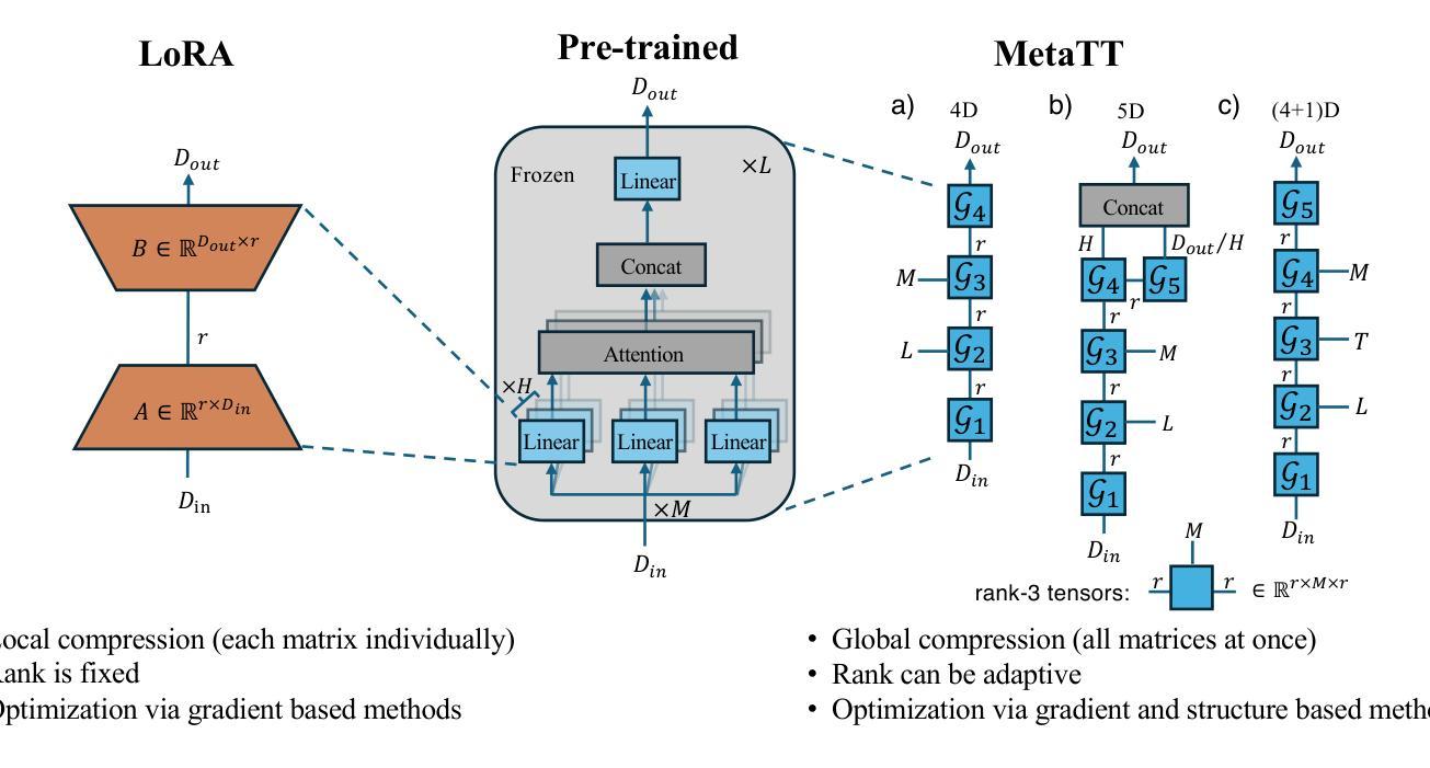 - MetaTT是一个基于Tensor Train(TT)的适配器框架,用于预训练变压器的灵活微调。