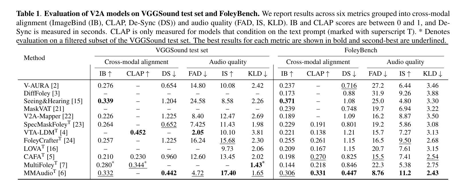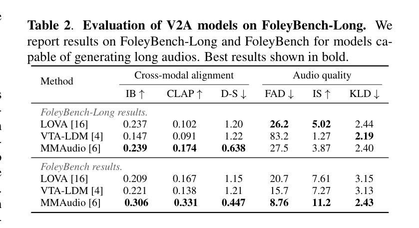 - 引入FoleyBench:首个专为Foley风格V2A评估设计的基准测试数据集。