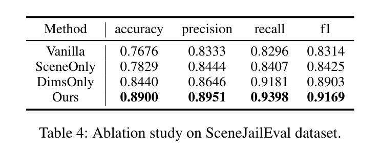 - SceneJailEval在全面场景数据集和JBB上表现优异,较SOTA有显著提高。