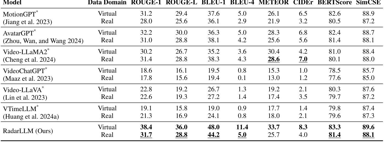 - RadarLLM框架首次结合大型语言模型(LLM)进行雷达信号的人体运动理解。