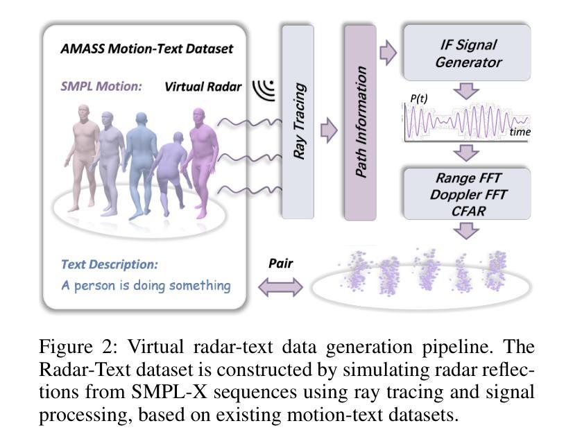 - 为了克服配对雷达文本数据的稀缺性,通过物理感知合成管道生成了雷达文本数据集。