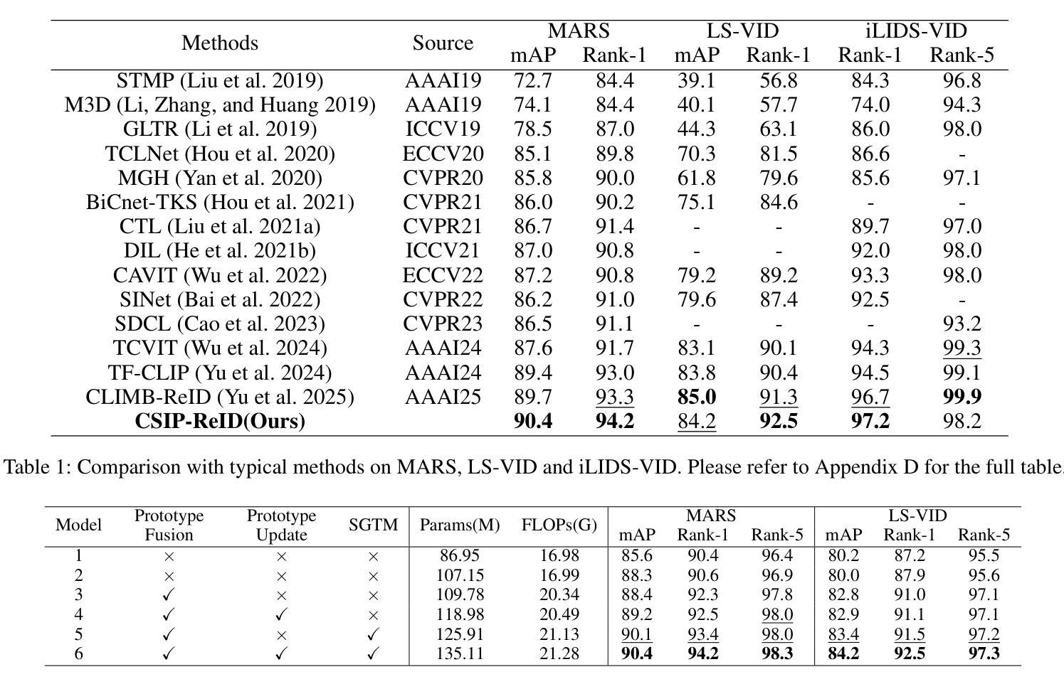 - CSIP-ReID在视频再识别标准数据集上取得最新成果。
